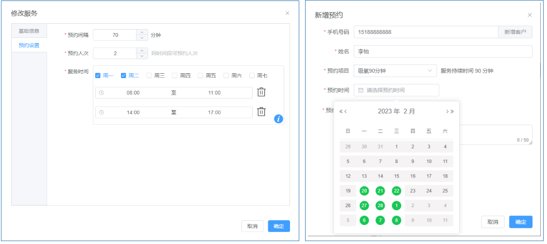 按服务类型分类,根据设置可自动生成预约时间表,简化客户预约程序