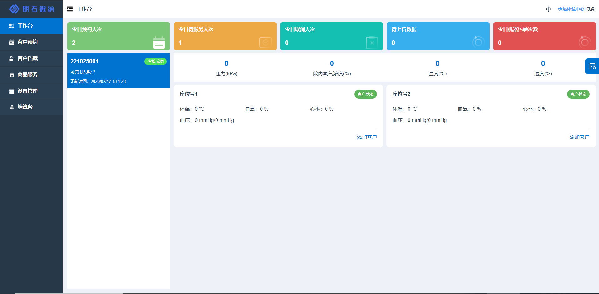 支持多台设备同时管理,可实时查看设备状态,包含舱内压力、舱内氧气浓度、温度、湿度等数据
